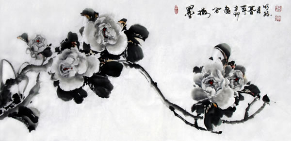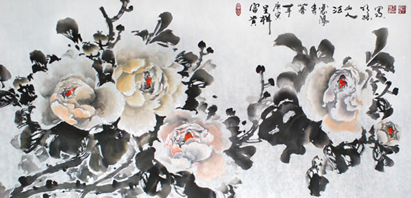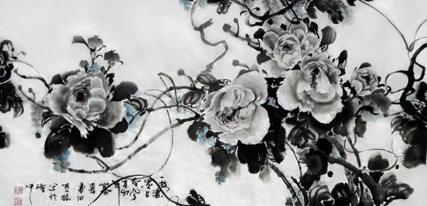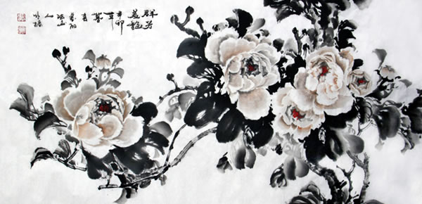 解读蔡明振的作品不难看到,他较好地传承了中国画艺术特有的清空、超然、蕴藉与典雅,在作品中体现出东方式的天人合一的艺术精神和儒、释、道、禅文化意韵。从他近期写意牡丹作品中,既可感受到浓郁的传统情趣及东方水墨的无穷魅力,又能探寻到他广引博征、慧眼卓识的执著创新。他以书入画,用笔古拙、遒劲、厚重,用色古艳清新、艳而不俗,色墨对比强烈,极具视觉冲击力和感染力;作品朴素生动,意趣盎然,洋溢着浓郁的生活气息和现代审美情趣。